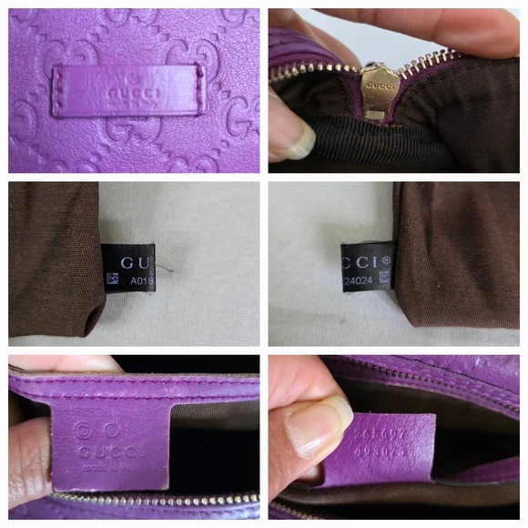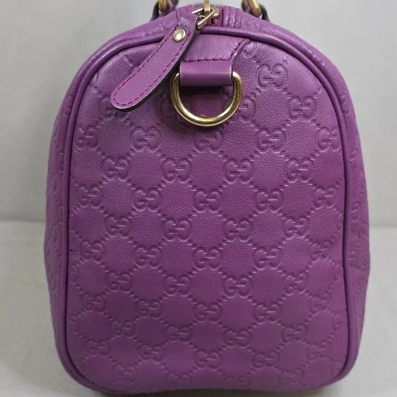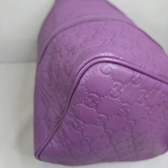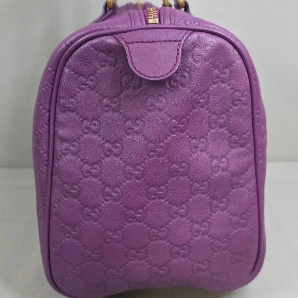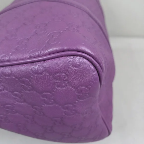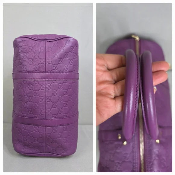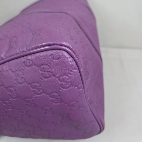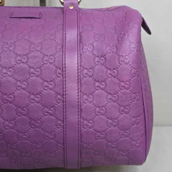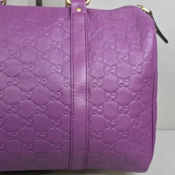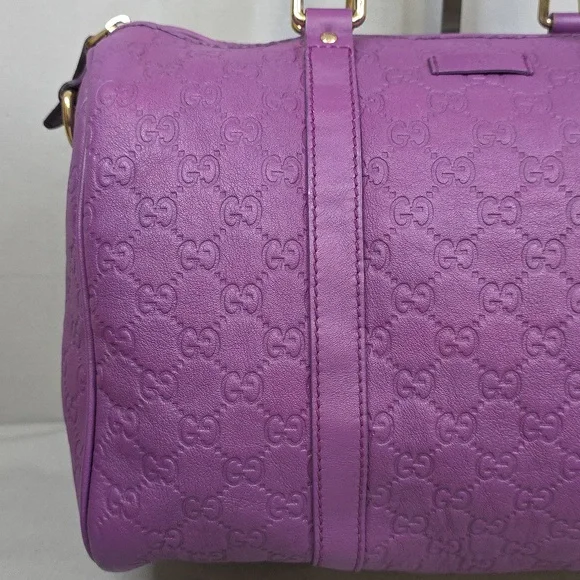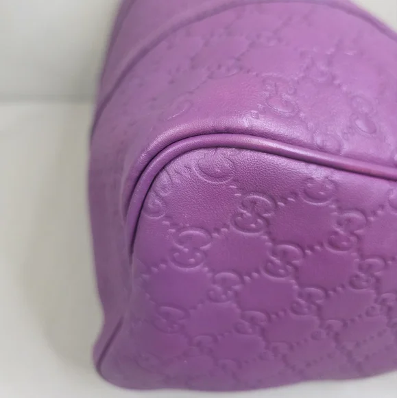 💜 PRE-LOVED 💜☆Exterior : GG embossed leather in purple has creasing / scuffing,,no tears, no cracks, no holes☆Interior : lining has fading / discoloration throughout,,no rips, no tears☆Purple leather trim including handles has creasing / scuffing,,no cracks☆Gold tone hardware☆Open top with zip closure☆Handle drop : 4"‼️Please see pictures for all details‼️💢 💯% AUTHENTIC 💢