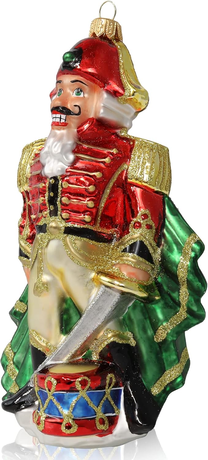 "Experience the magic of the holiday season with our Limited Edition collection of glass Christmas ornaments from Kurt Adler. Each ornament in this collection is a celebration of fine craftsmanship, designed to transform your Christmas tree and holiday decor into a winter wonderland. Each glass ornament in our Kurt Adler collection is hand blown, ensuring that every piece is unique. This meticulous process results in a set of ornaments that are perfect for adding an artisanal and personalized touch to your Christmas tree decorations. Celebrate the festive season with our soldier nutcracker Christmas tree ornaments. Sized at 3"" L x 4"" W x 7.5"" H, these delightful ornaments embody the joy and enchantment of Christmas, seamlessly fitting into both classic and modern holiday themes with their unique design. Crafted from premium quality glass, these Christmas ornaments are not only visually stunning but also built to last. Designed to withstand the test of time, they promise to be a valuable addition to your holiday decor for many seasons to come. Searching for cool Christmas gifts or unique holiday decor? Look no further than these Kurt Adler soldier nutcracker ornaments. Ideal as presents for loved ones or as a special treat for your own collection, these ornaments are guaranteed to bring joy and a sprinkle of holiday magic to any home. Kurt Adler has been a leading manufacturer of top-tier Christmas ornaments since 1946. Made in Poland, a country celebrated for its glassmaking excellence, each ornament is a testament to unparalleled craftsmanship, embodying a rich heritage of quality that Kurt Adler is renowned for. Embrace the spirit of the holidays and make your Christmas tree stand out with these delightful Kurt S. Adler Glass Christmas Ornaments. They are not just decorations, they are keepsakes that capture the heartwarming essence of Christmas."